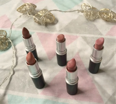 First up, and probably my favourite colour group at the moment, the nudes. I tend to prefer the matte formula for nude lipsticks, mac matte lipsticks tend to be quite creamy and not too drying. My go to lipliner for these lipsticks is Mac's Soar lipliner, I'm in love with that liner!